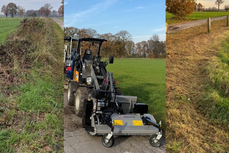 Flexibles und Bodenschonendes Mulchen mit unserem Hoflader und einem 130cm Frontmulcher.